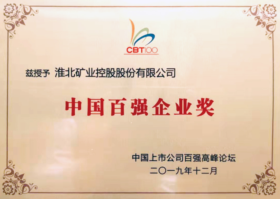 淮北礦業(yè)獲評“2019年中國上市公司百強企業(yè)”榮譽稱號