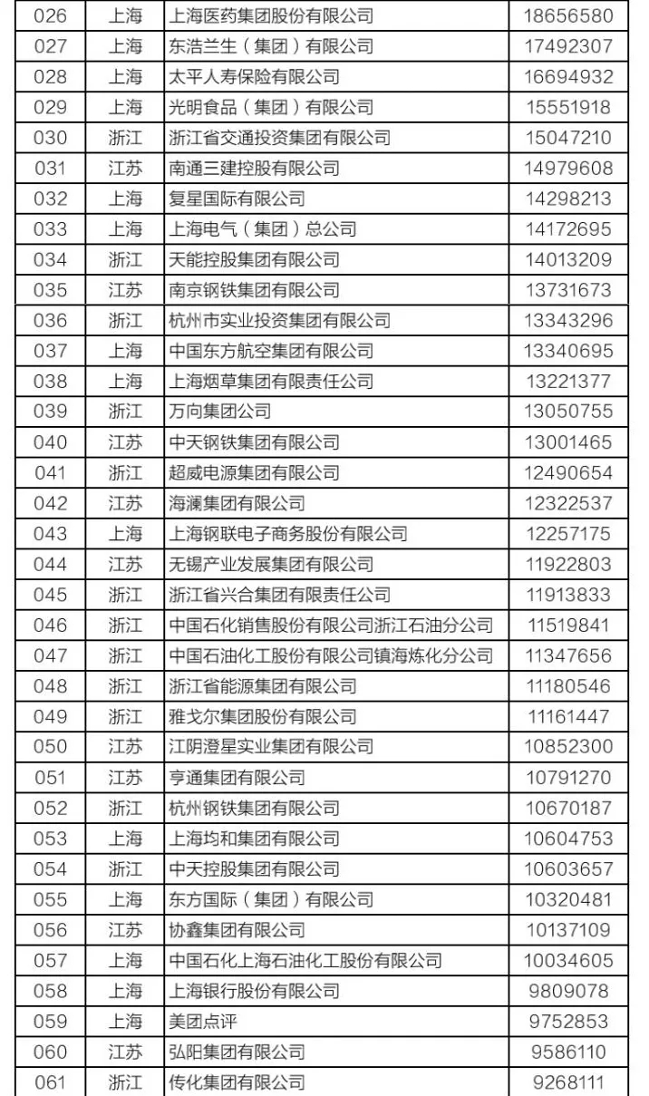 該榜單以2019年企業營業收入為入圍標準,由長三角三省一市企業聯合會共同發布。今年是第二次發布長三角企業百強排行榜,入圍門檻是563.8億元,比上年提高了54.5億元。今年我省共有9家企業上榜,除淮北礦業集團外,其他8家企業為海螺集團、銅陵有色、中鐵四局、聯寶(合肥)電子、全威(銅陵)銅業、美的集團蕪湖公司、奇瑞控股集團和合肥百大,主要分布在水泥建材、有色金屬、汽車制造、煤炭和煤化工等行業。
